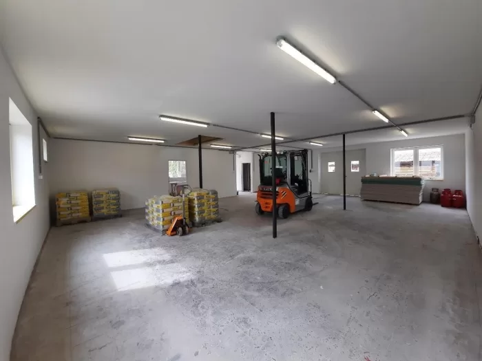 „A” épület, fűtött 30 cm hőszigeteléssel, 1,5 tonnás elektromos rakodógéppel